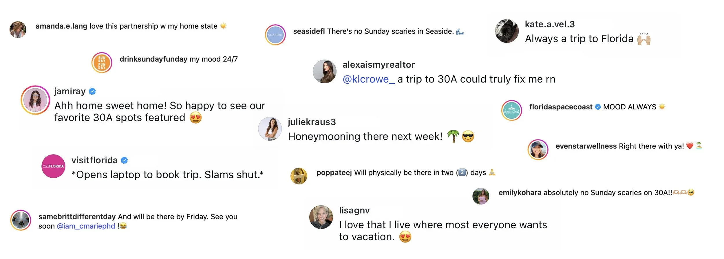 We leaned into Sunday Scaries’ signature Instagram formats—“This and…” and “Mentally I’m here”—pairing relatable, scroll-stopping copy with film photography shot in 30A and Florida Keys. The result was content that felt both aspirational and instantly familiar—and it outperformed every benchmark we set.