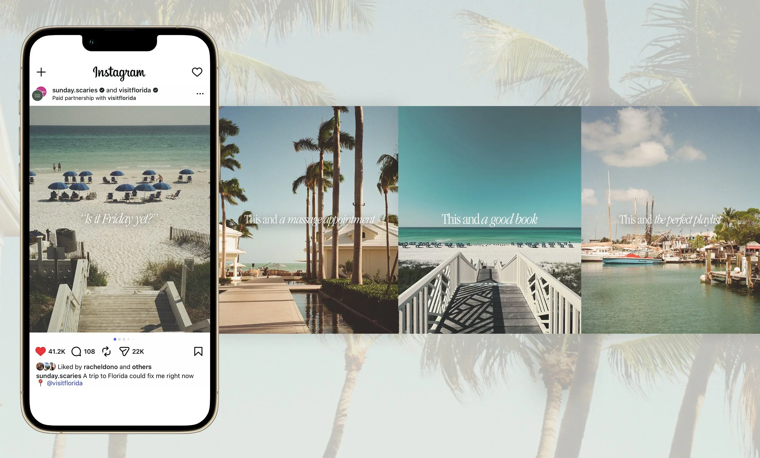 For Visit Florida’s spring campaign “Florida by Friday,” we partnered with Visit Florida and Sunday Scaries to position Florida as the perfect last-minute escape. The goal was simple: tap into a high-intent, affluent audience and turn weekday burnout into spontaneous trips to the Sunshine State.